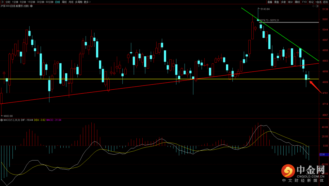 沪深300短期出现四连阴,且乖离率也出现扩张形态,短期大概率会出现一根阳线去做修复,后续行情中在没有出现明显止跌的状态下大概率会延续下跌走势。