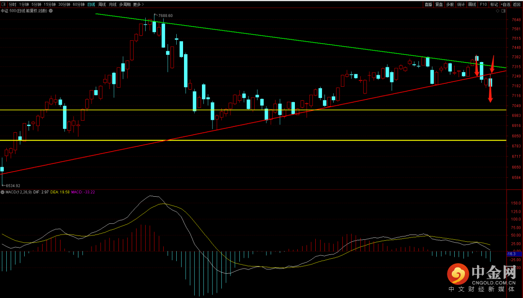中证500已经跌破了上升趋势线,短期大概率会向下去探7100点附近的支撑。后续行情在没有出现底分型需要保持谨慎状态,而向上则需要在未来两周保持强势,否则进入周线调整将可能会延续比较久的调整段。