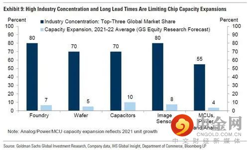 资本支出反应缓慢且受限的原因包括新代工厂的交货时间长和固定成本高,以及下游行业可能将生产从目前供不应求的半成品转移出去——其中许多是老一代产品。面对非常强劲的近期需求,行业集中度高是导致资本部署受限的另一个因素。
