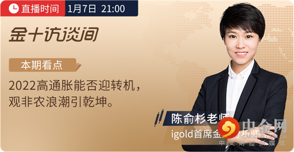 1月7日周五晚,2022年首份非农就业报告即将出炉,一方面是美国经济重启与就业市场恢复的乐观预期,一方面是变异毒株的迅速传播,黄金迎来新一轮重磅大考。今晚21:00,陈俞杉老师将亮相金十热门财经专栏【金十访谈间】,引领投资者捕捉交易良机!