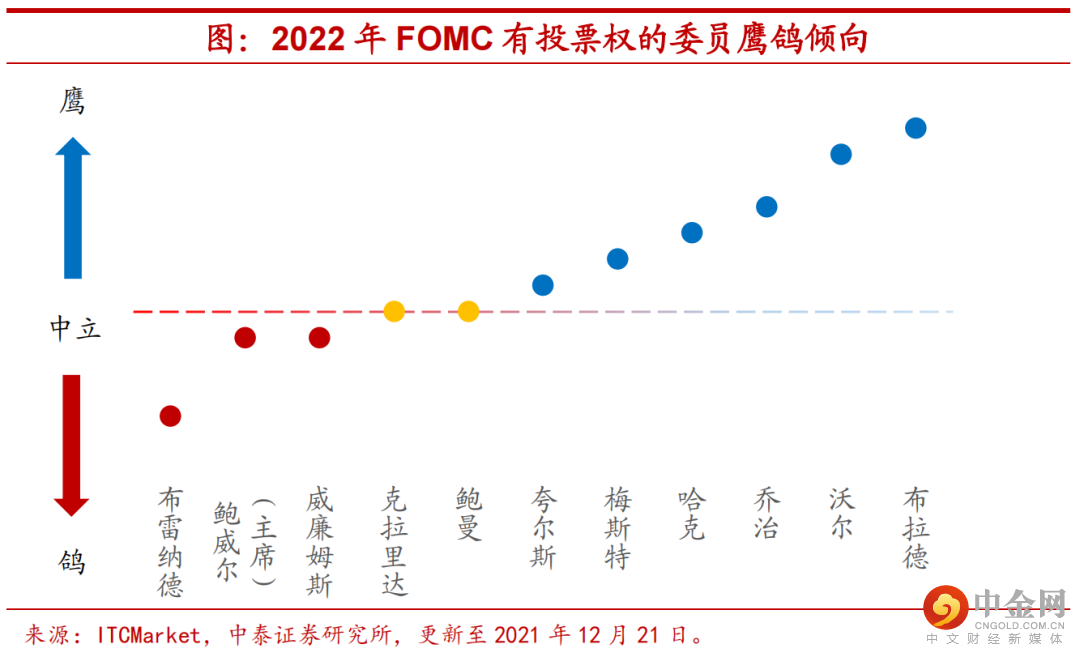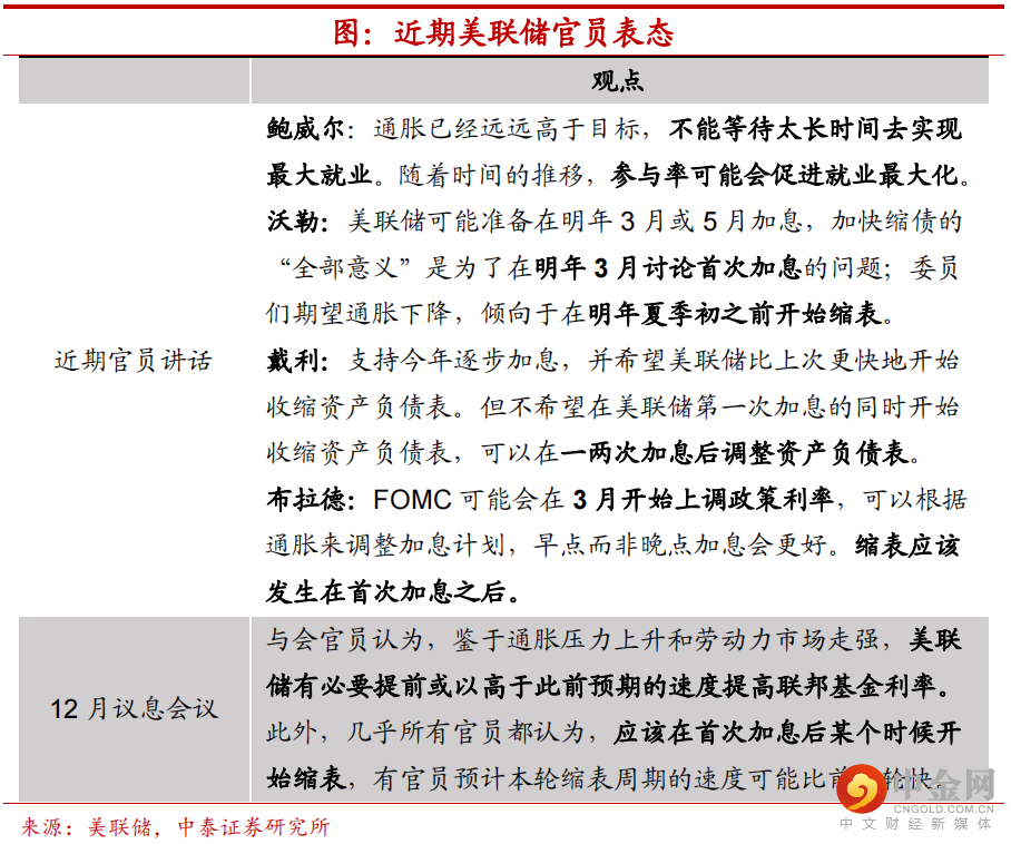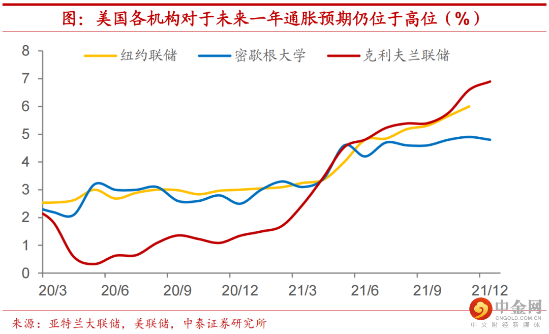 通胀预期居于高位。美国11月CPI同比上升6.8%,打破了同年10月的创下1990年以来新高记录,核心CPI同比上升4.9%。美国11月核心PCE同比上升4.7%,创1991年以来新高。从各个机构对于美国通胀水平的预期来看,今年美联储物价增速或将居高不下,至少来说会保持在当前5%-7%的增速高位。