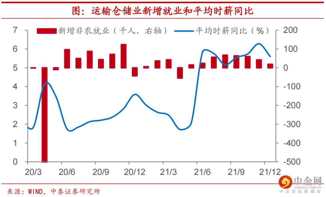 运输仓储业劳动力供给仍然不足。2021年12月,美国运输仓储业新增就业人数仅录得1.87万人,较同年11月新增4.22万人下降56%。与此同时,运输仓储业的平均时薪仅上涨8美分,录得27.16美元,当月平均时薪同比由6.3%小幅下降至5.6%。这充分表明行业劳动力供给仍然短缺,由此可能在部分程度上造成通胀压力短期难以缓解。