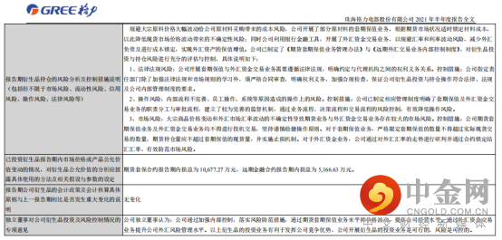 2021年半年报中,上市公司对衍生品业务的披露更是“五花八门”。格力电器2021年半年报中的衍生品投资情况显示,该公司衍生品投资类型包括期货套保合约和远期金融合约,报告期实际损益金额分别为10677.27万元和5089.97万元,合计15767.24万元。令人费解的是,已投资衍生品报告期内市场价格或产品公允价值变动的情况说明却显示,格力电器期货套保合约报告期内损益为10677.27万元,远期金融合约报告期内损益为5166.63万元。在同一份半年报中,远期金融合约报告期内损益竟然有两个数值,哪一个是真实的,恐怕要上市公司来回答了。