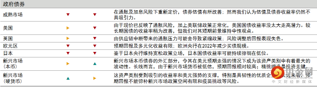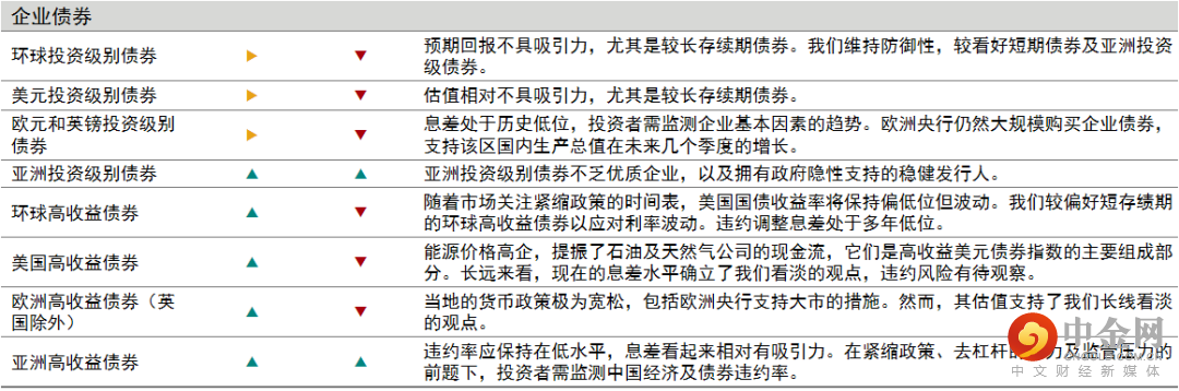 图标:↑ 对此资产类别的观点已上调; ↓ 对此资产类别的观点已下调。
