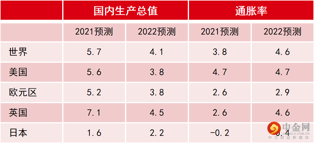 我们预计全球将持续复苏,但今年的增长将较为温和。(2022年国内生产总值预测为4.1%,而2021年为5.7%)。
