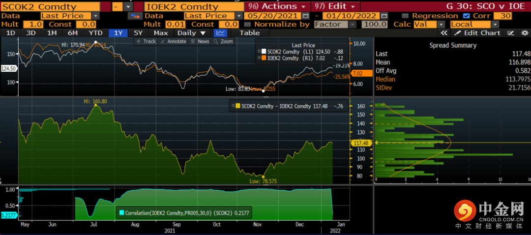 DCE大商所铁矿05月/22年-SGX新交所铁矿05月/22年