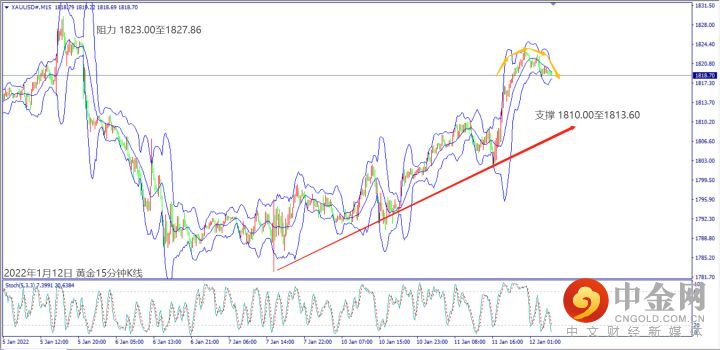 昨天(11日)鲍威尔示警第一季度经济造成美元回测两个月来低点,带动黄金重回1820关口。预期今天(12日)美国公布CPI趋缓利淡美元,黄金价格守稳小时布林带下轨线1817美元,建议可偏多操作。