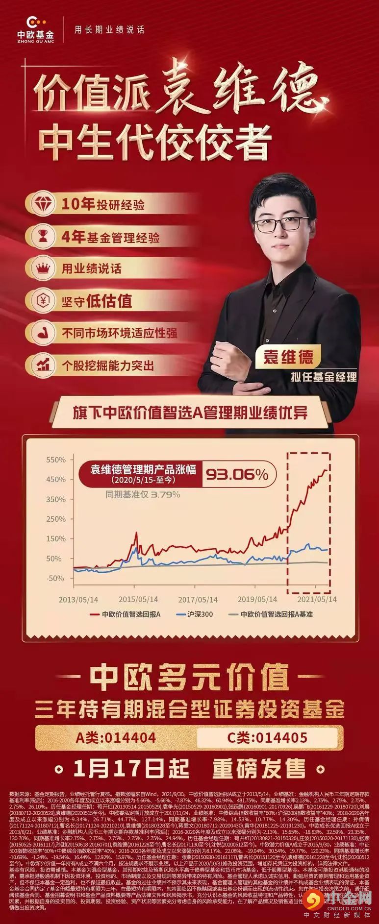 袁维德还透露,他目前在管的中欧新兴价值产品中,对港股的配置比例约为10%,但即将于1月17日发行的新产品中欧多元价值三年持有期产品(014405)中,对港股的配置比例可能会提升到最高20%的仓位。