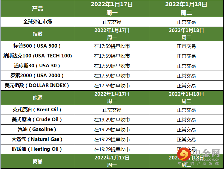 感谢您选择国汇亚洲!我们在此通知您有关世界各地节假日交易时段的变化:1月17日(周一)— 马丁路德金纪念日(美国)
