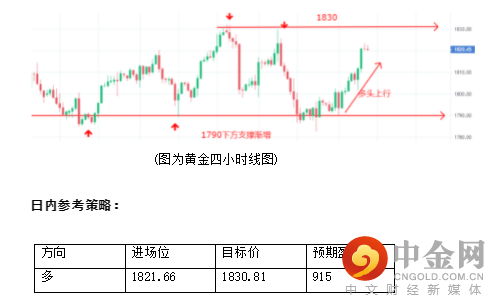 四小时线观察,K棒在1790附近打底站稳,反弹走高,多头力道依旧有,前高阻力1830突破,则有机会持续上行,可短多试单,目标1830附近,但走高后,需留意回调风险,如持续走低,来到1820下方,偏空思考。