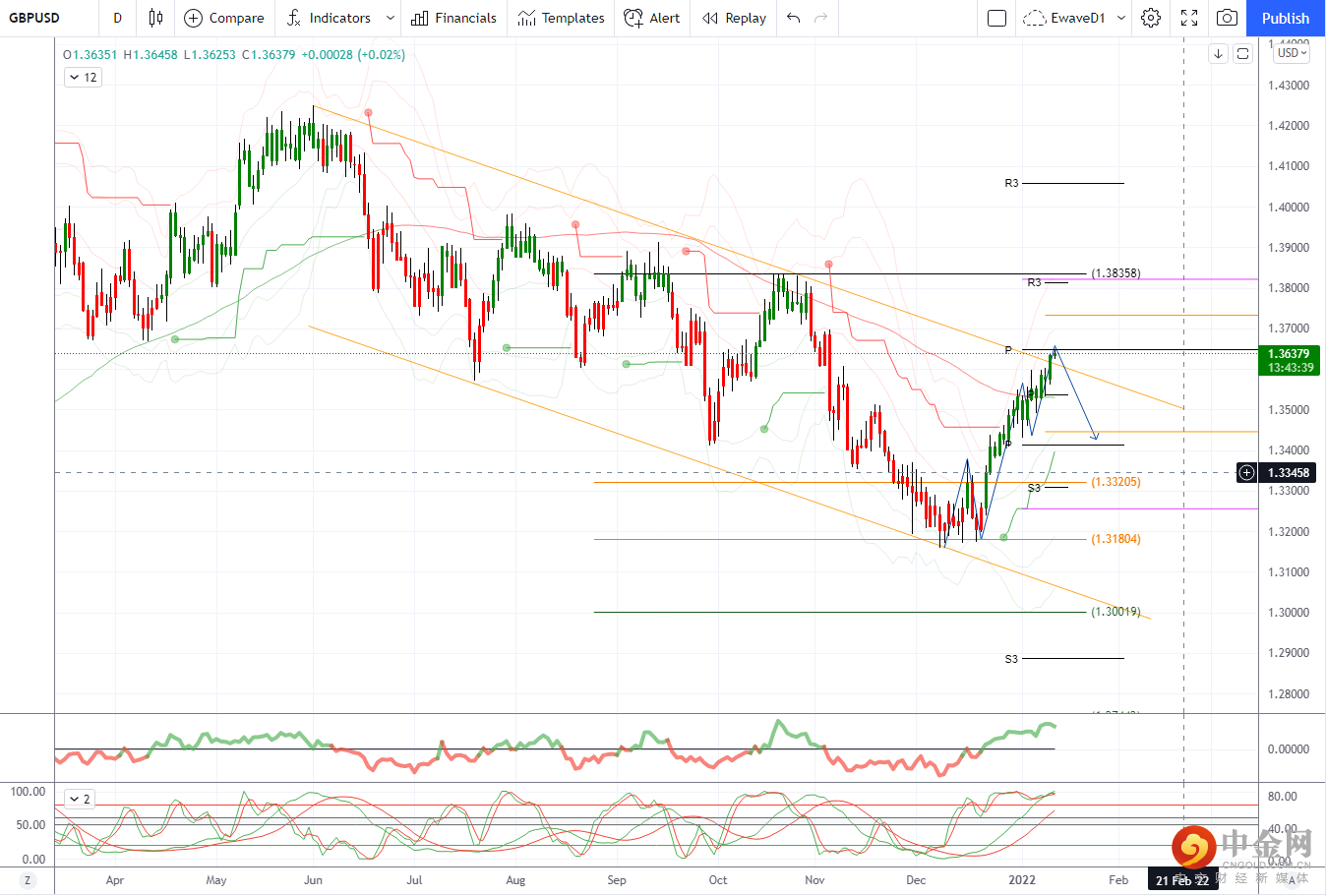 GBPUSD 日内偏差:1.36下方看跌,上方看涨。