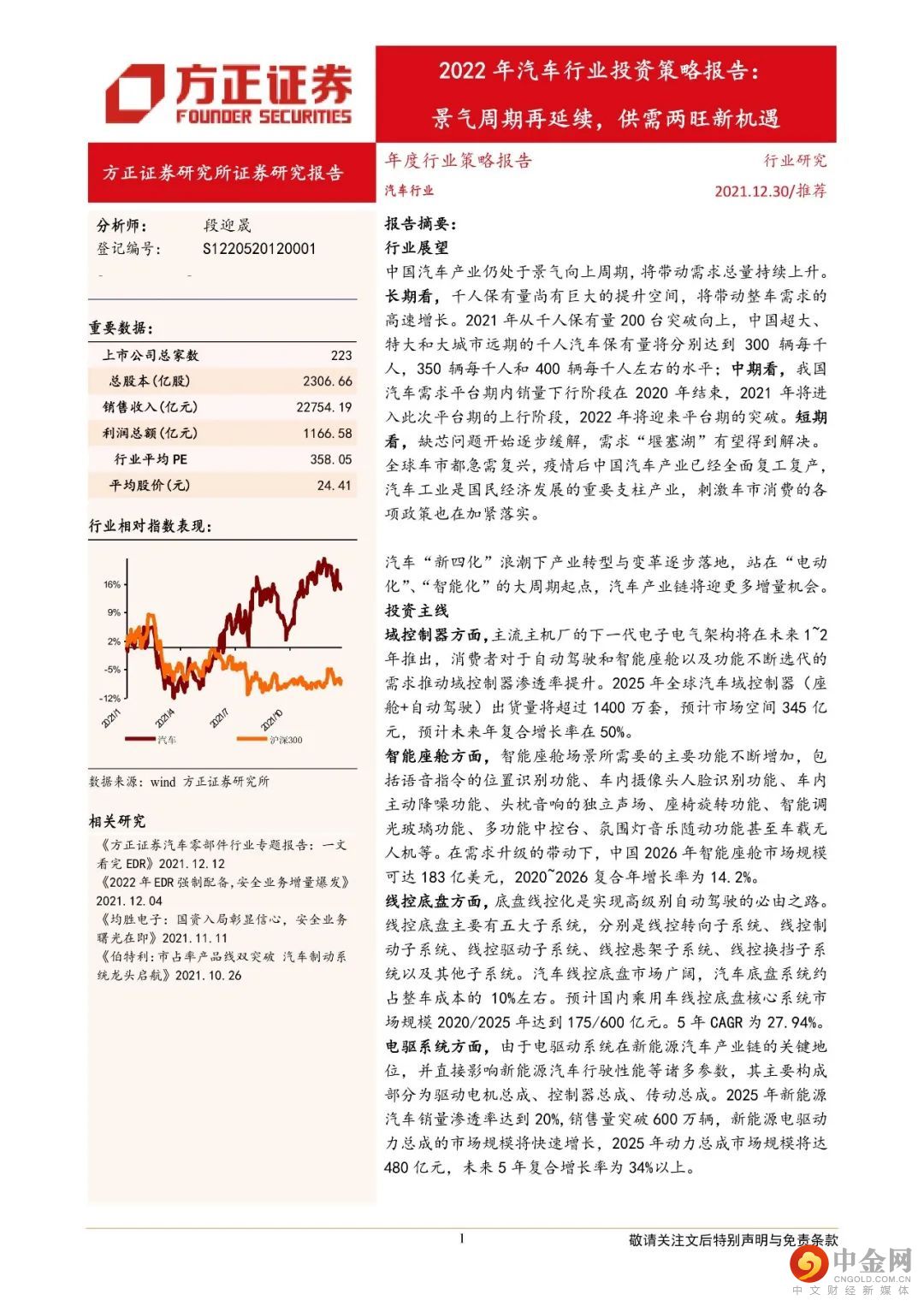 本文来自方正证券研究所于2022年1月5日发布的报告《2022年汽车行业投资策略报告:景气周期再延续,供需两旺新机遇》,欲了解具体内容,请阅读报告原文。