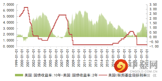 图1.2.1:每次加息周期中都伴随着美债收益率曲线平坦化