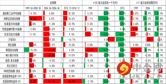 表1.2.1:最近的三轮加息周期中大类资产表现梳理
