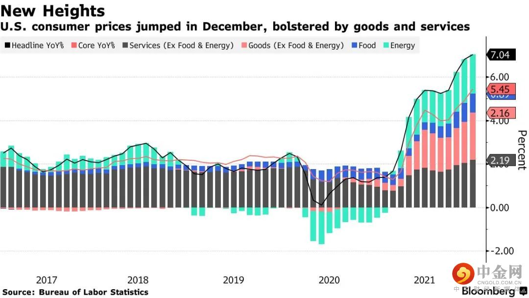 根据美国劳工统计局周三(1月12日)公布的数据,2021年12月消费者物价指数(CPI)环比上涨0.5%,高于0.4%的预期;这使得该数据如预期同比上涨了7%,是1982年6月以来最大的同比涨幅,高于11月的6.8%。