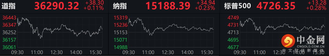截至收盘,标普500指数涨0.28%,报4726.35点。道指涨0.11%,报36290.32点。纳指涨0.23%,报15188.39点。