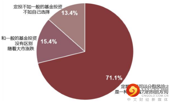 基金定投成为大部分资者认可的投资方式。有七成投资者认为基金定投“可以分散投资风险、是一种省心省力的投资方式”。不过在对待基金定投的态度上呈现出较为明显的性别差异模式,女性投资者比男性持更加肯定的态度,75.1%的女性肯定基金定投,而男性仅有 67.7%,男性普遍表现出更高的自信,但就实际情况来看过度自信在行为金融领域被认为投资失败的一种重要的行为。有的时候把钱交给老婆管也可能是一个更理性的选择。