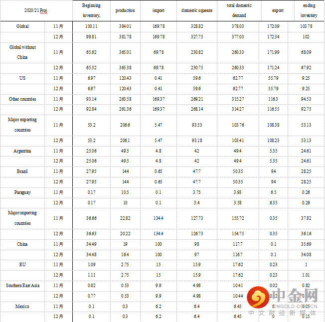 In terms of import and export trade, the current export situation of U.S. soybeans, which is the pricing standard, is not good. The main reason is that the high prices of U.S. soybeans are constrained by the high price of Brazilian soybeans, and the high inventory of Brazilian soybeans is more cost-effective. USDA's December supply and demand report has not changed from November. It is expected that significant changes will be seen in the January supply and demand report in the future. In particular, there is still greater pressure on inventory expectations.