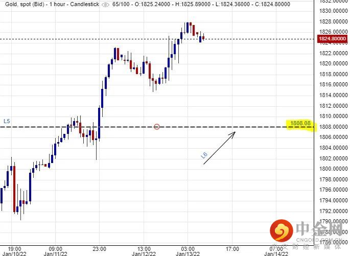 美国12月消费物价指数去年同期比较录得7%增长,是自1982年以来最快速的通胀增长水平,同时也是消费物价指数连续第三个月录得超过6%的上升幅度。投资者消化过这数据结果后,应该会推断近日新变种病毒omicron,会进一步令到全球供应链继续呈现出紧缩状态,从而推动通胀持续升温,因此,通胀敏感的投资者应该会有追入黄金对通胀危机的意欲。