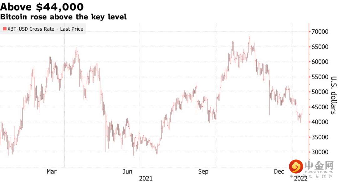 数据发布后,比特币扩大涨幅,一度升至44000美元/枚上方。部分投资者预测通胀涨幅将更高,从而推动股票等风险资产走高。