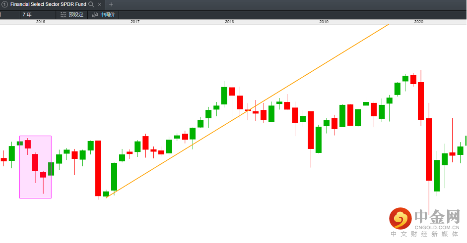 美国金融精选行业SPDR基金 (XLF) —— 月线图