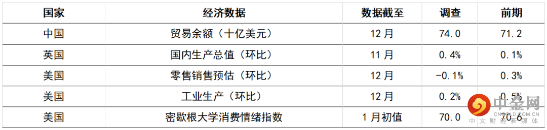 今日公布的经济数据 (2022年1月14日)