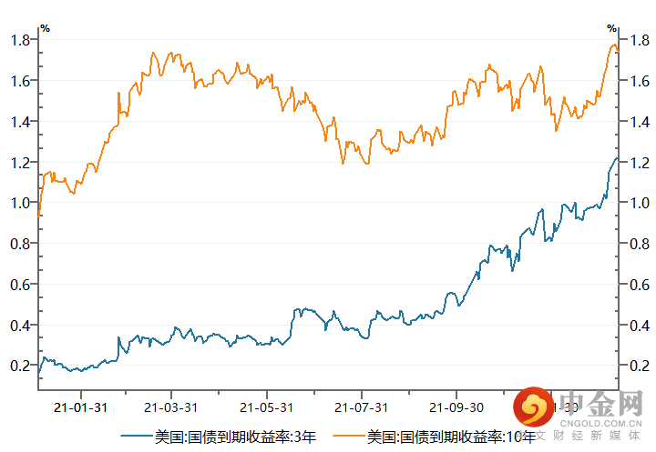 美国3年期和10年期国债收益率上行