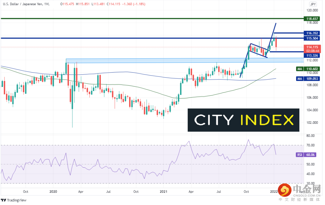 同样在上周,Boris Johnson的工作人员被曝出在封锁管控期间多次聚会并狂欢到凌晨,有一次聚会发生在菲利普亲王葬礼前夕。Boris Johnson并未参加,但据称对聚会知情。而且Johnson已承认参加了于2020年5月举行的花园派对,现在面临违反防疫封锁令的质询。他的对手当然呼吁其下台,但这不会瞬息间发生。雪上加霜的是,Johnson此时正忙于应对关于其在脱欧问题上的作为的强烈批评。英国新任外交大臣Liz Truss上周与欧盟谈判官会晤,随后宣布将于1月24日重启《北爱尔兰议定书》的谈判。过去一个月英镑高歌猛进,兑美元暴涨近575点子。后市会因为Johnson的负面新闻而回撤吗?