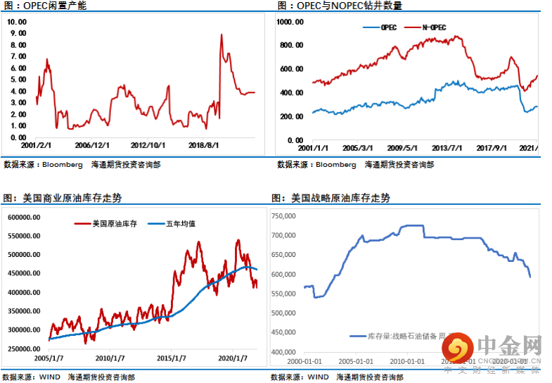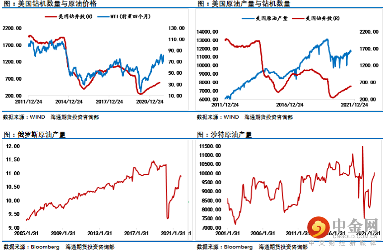 事实上,近期虽然利多因素影响更大,但原油市场也并非没有利空,譬如有消息称俄罗斯在2022年1月上半月将产量较2021年12月提升了9万桶/日,利比亚产量开始回归,随着油价的不断升高,美国钻井数量也在不断的增加。据贝克休斯油服公司数据显示,截至1月14日当周,美国石油钻井总数增加11口至492口,为2020年4月以来最多。美国周度库存数据显示,成品油累库大幅超预期,这意味着美国需求还是受到了疫情影响,而中国前段时间非国营原油进口配额远低于去年同期也让人对今年中国原油需求的增长产生担忧,不过,当前市场更多还是围绕着原油市场供应紧张和地缘政治局势升级等因素运行。