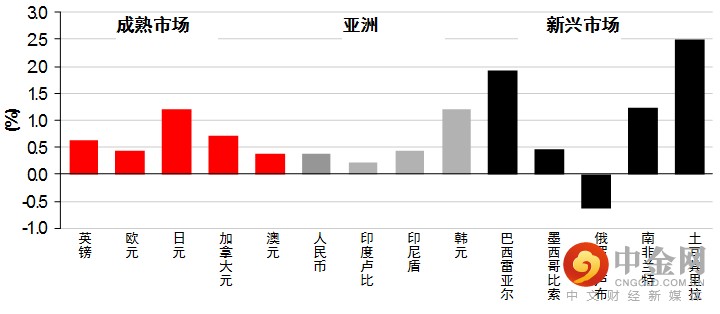 欧洲政府债券微升(息率走低),投资者对欧洲央行今年后期加息的预期降低。基准的德国十年期政府债券息率上周变动不大(-0.05%)。非核心债券息差收窄,意大利十年期政府债券息率跌4个基点至1.27%。