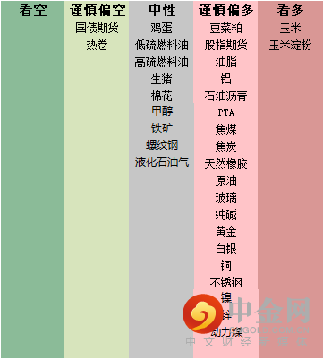 注:上图所有品种观点为主力合约的短期观点,具体以官网报告为准