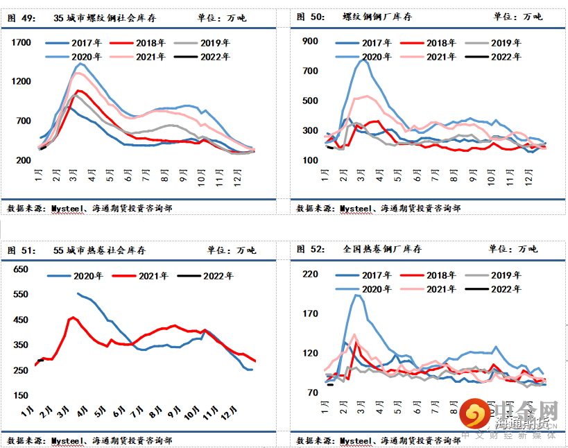 库存:螺纹钢和热卷社会库存延续增库存周期,当前累库速度偏稳;厂库总体维持低位。