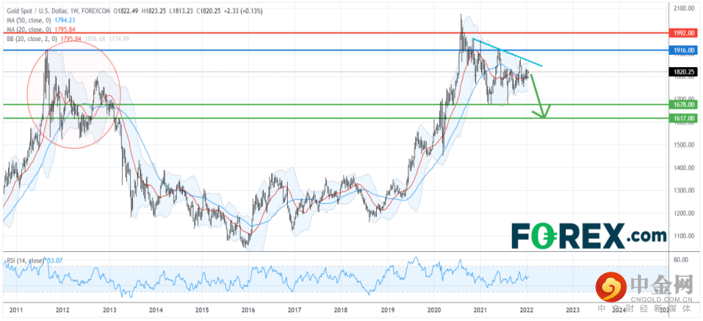 只要主要阻力 (止损) 位1,916美元不破,金价料将回到下方目标1,678美元及1,617美元。