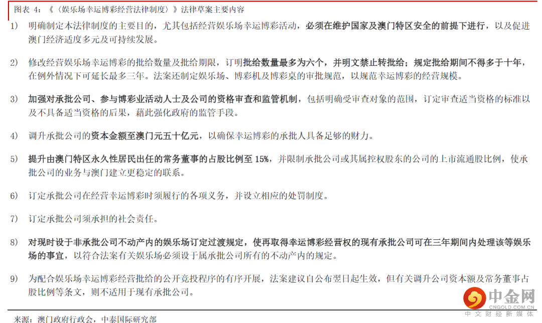 1) 赌牌数目确定,消除困扰行业主要的不明朗因素。澳门政府强调维持博彩业稳定对澳门经济、民生、财政收支的重要性,建议发放最多六个赌牌,禁止副牌,符合预期,我们相信最终批出赌牌的数目也是六个,这利好原持有副牌的金沙中国(1928 HK)、美高梅中国(2282 HK)及新濠博亚(MLCO US)。若政府的立法、竞投工作未能于今年6月六大博企赌牌届满前完成,我们预计会把现有赌牌短暂延期一年左右。