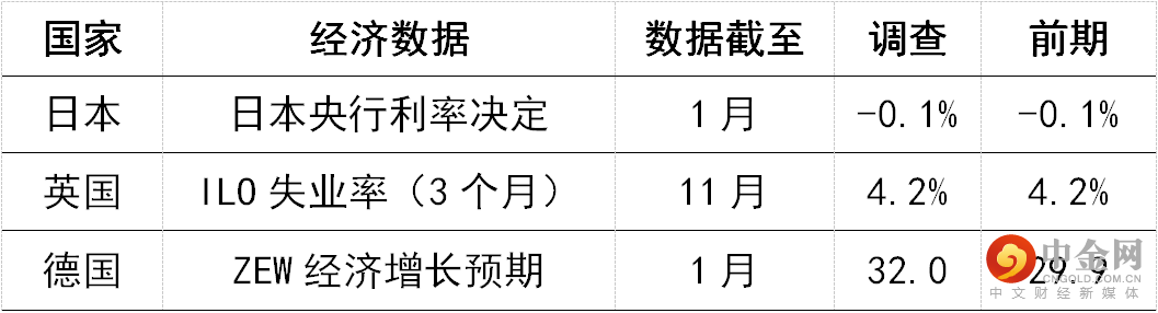 德国Sentix调查整体上升,预期与12月份相比大致保持不变,1月份的「现况」指数则上升。德国ZEW指数倾向跟随两项分项指数的类似步伐,反映1月份经济增长预期指数可能由上月的29.9回升至32.5。