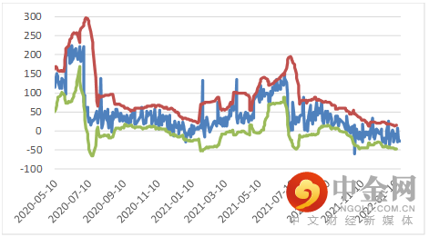 月间价差:上周,A50月间价差的布林通道上下轨范围:[-47,17],建议价差突破此范围可进行套利。