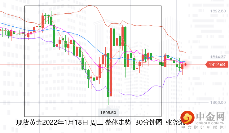 展望今日周三(1月19日):国际黄金亚市早盘窄幅运行,美元指数及美债收益率继续延续隔夜大涨后的动力持稳走强对其产生压力。但美国股市近日连续大幅回落,地缘危机及疫情激增等限制了金价的跌势。