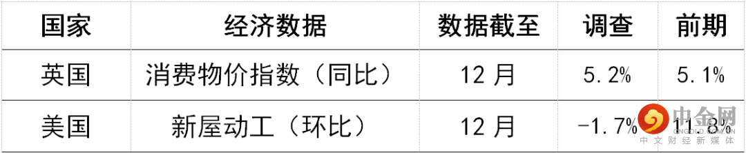 今日较后时间将公布美国新屋动工,数据继11月份急升11.8%(环比,经季节性调整)后,预期12月份将跌1.7%(环比)至1,650,000间。供应链中断及熟练劳动力短缺,限制了建筑商迎合需求大增的能力。