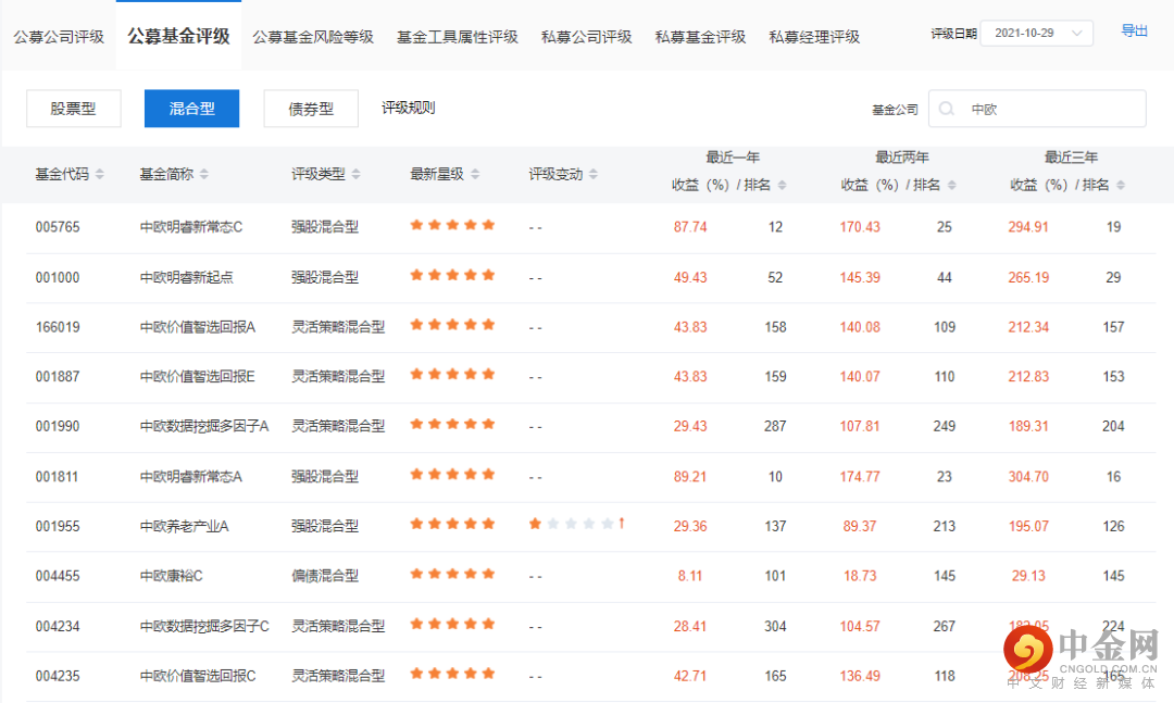 截图来自海通证券,数据截至2021年10月29日,为中欧基金部分五星级混合型基金基本情况,过往业绩不代表未来,基金有风险,投资需谨慎。