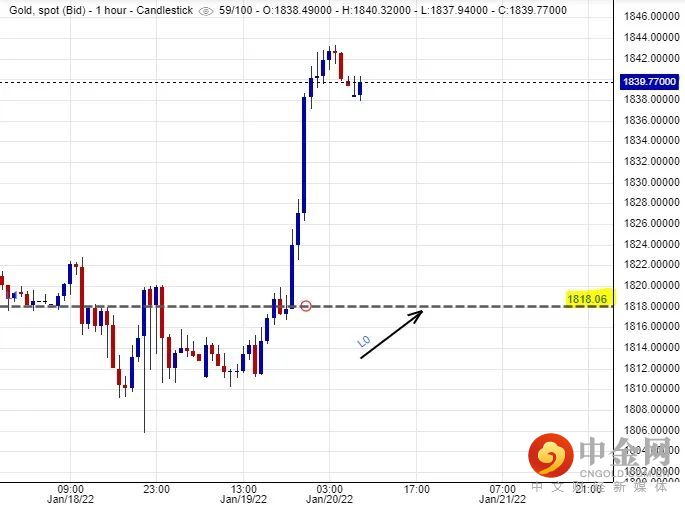 此外,俄罗斯是否会入侵乌克兰的地缘政治局势因素继续在发酵,这情况应该会提振投资者追捧黄金对冲地缘政治局势风险,有利金价短期间在$1,815美元的上方运行。