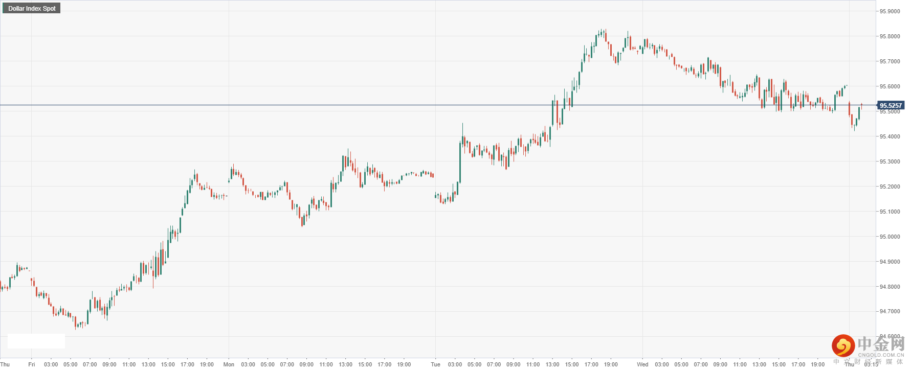 美元指数周三收盘大幅回落0.13%后,今日开盘跌至95.52附近,因美债收益率曲线整体从高位回落,导致美元下行疲软。