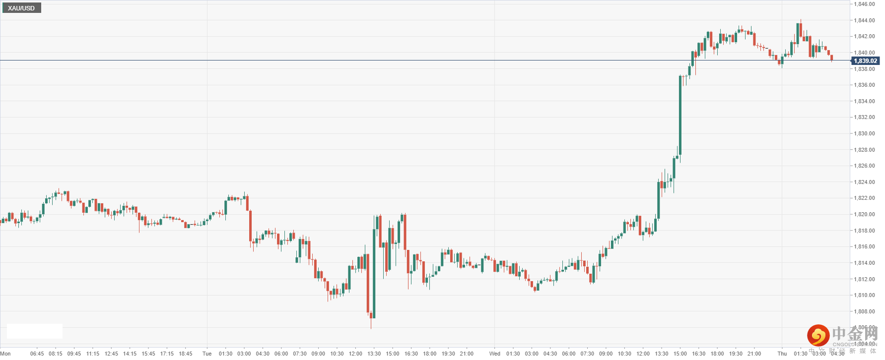 § 贵金属方面:黄金兑美元上升至1839.02。