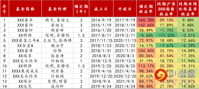 我们统计了自2014年起,我们曾重点跟踪过的定开(或长持有期)基金,他们中有一些基金已经经历了一个完整的持有期,有的基金还仍然处于封闭期内。