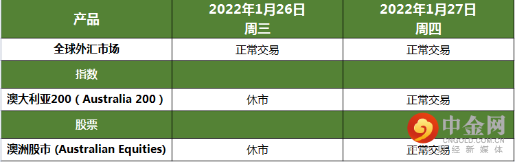 感谢您选择国汇亚洲!我们在此通知您有关世界各地节假日交易时段的变化:1月26日(周三)— 澳大利亚日(澳大利亚)
