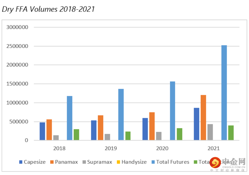 波罗的海交易所公布的数据显示,2021年的干散货运衍生品市场成交量出现了增长。