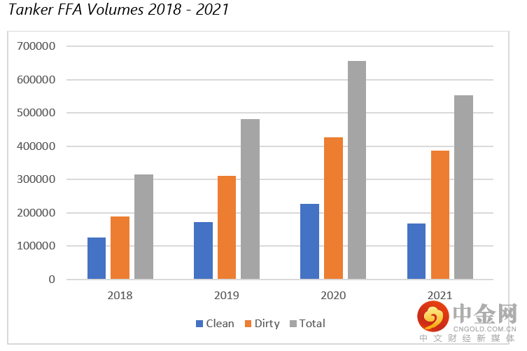 “去年,新冠疫情持续冲击供应链,导致干散货市场出现了巨大波动。由于运费处于低位、缺少卖方,2021年油轮远期运费协议市场进一步走低,但市场也展露出了一些信心。我们视为基准的中东至中国TD3C原油航线五年来一直保持着其持仓量,该市场的深度可见一斑。”
