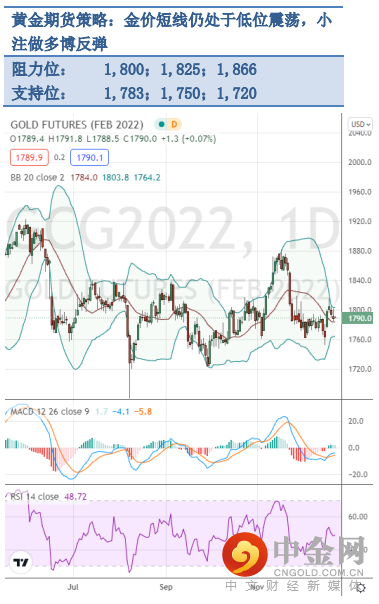 美联储收紧货币政策,自然是利淡黄金。早前市场对美联储加快 收紧货币政策的担忧盖过了通胀走高的影响,导致黄金一度形成 倒 V 走势。然而当前 3 月加息的市场预期已经很难继续提前,这 意味着黄金或处于利空出尽的阶段。上周金价重返日线保利加通 道中轨之上,成功阻止了短线局势的恶化,反映出多头力量逐渐 加强,黄金中线走势有望反复转好。本周美国并无太多重要数据, 重点关注中国四季度 GDP、欧元区 1 月 ZEW 经济景气指数以及欧 元区和英国 12 月核心通胀。