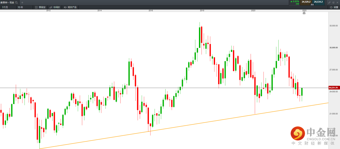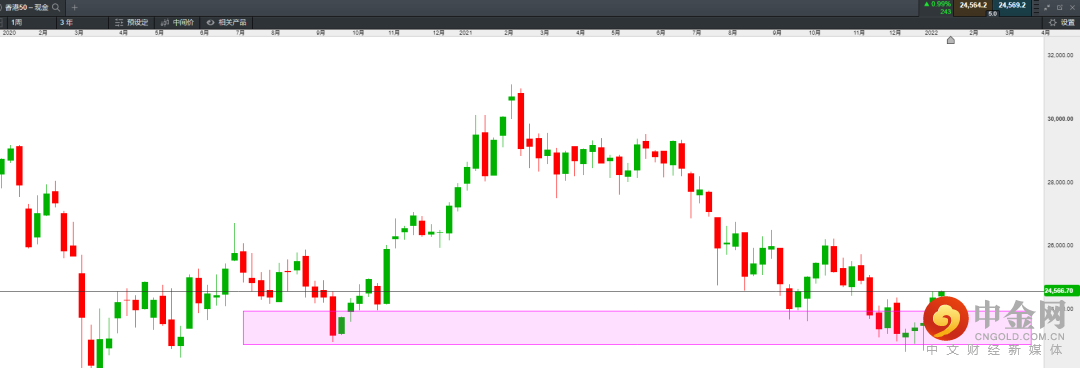 从月线级别来看,恒指本月或录得大阳,整体结构处于震荡向上运行之势。周线已经录得五周连阳,因此23000-24000区域大概率筑底。