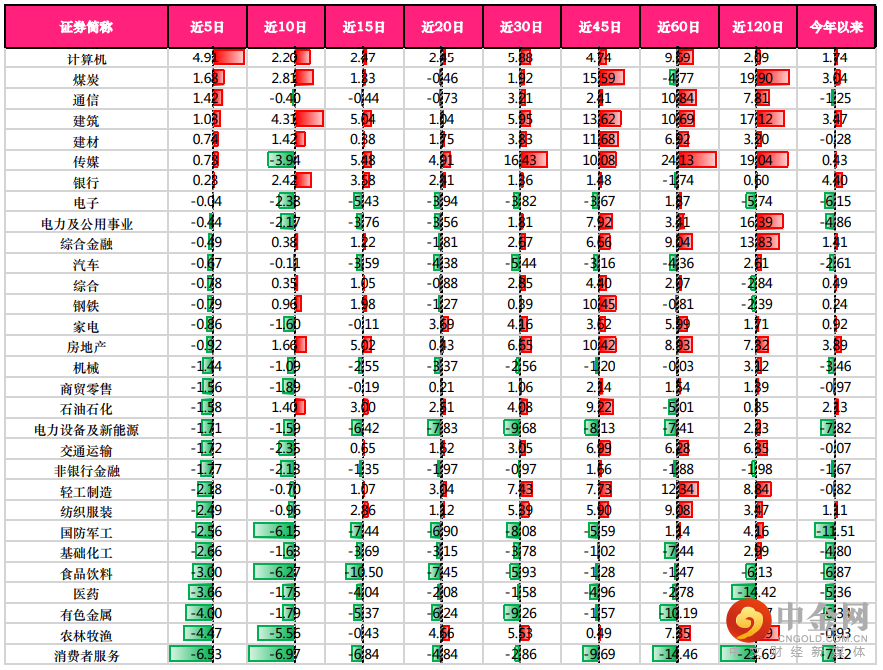 通过行业周期涨跌幅的观察,我们可以找到近5日、近10日表现比较优秀的行业,如计算机、煤炭,这些行业是近期的热门行业。从动量效应的角度来说,我们可以在这些行业内寻找机会。但是,还是需要考虑估值、基本面、政策面等因素去判断其涨幅的可持续性。