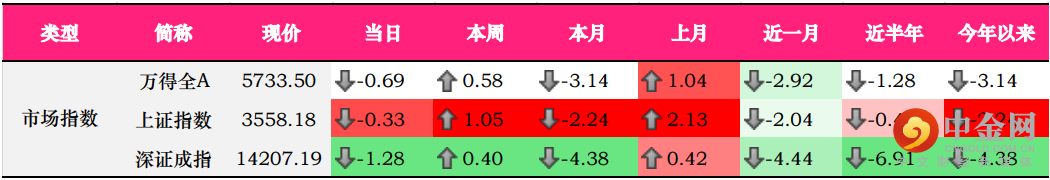 昨日,A股再度小幅回调,上证指数跌0.33%,报3558.18点;深证成指下行幅度更为显著,跌1.28%,收于14207.19点。